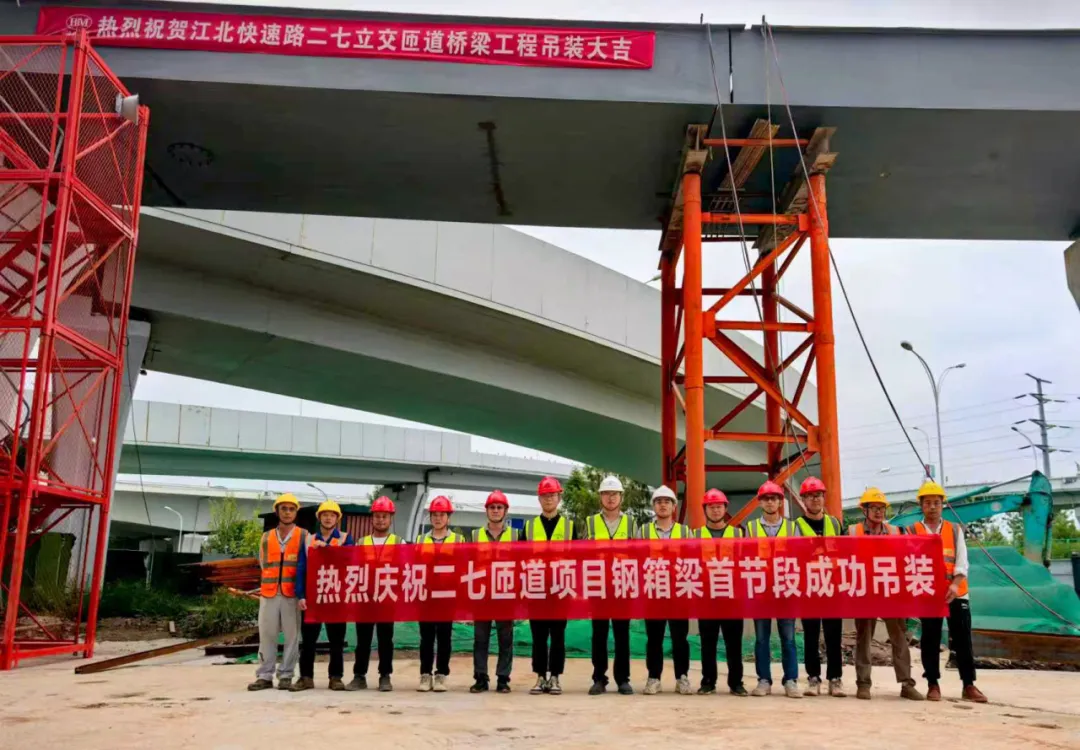 項目直擊丨江北快速路二七立交右轉匝道項目鋼箱梁首節
